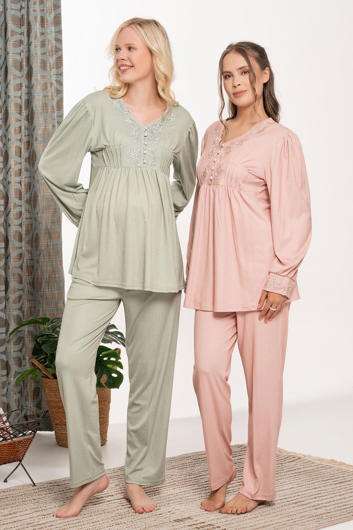 Bone 6107 Floşlu Polar Sabahlıklı Lohusa Pijama Takımı (6107)