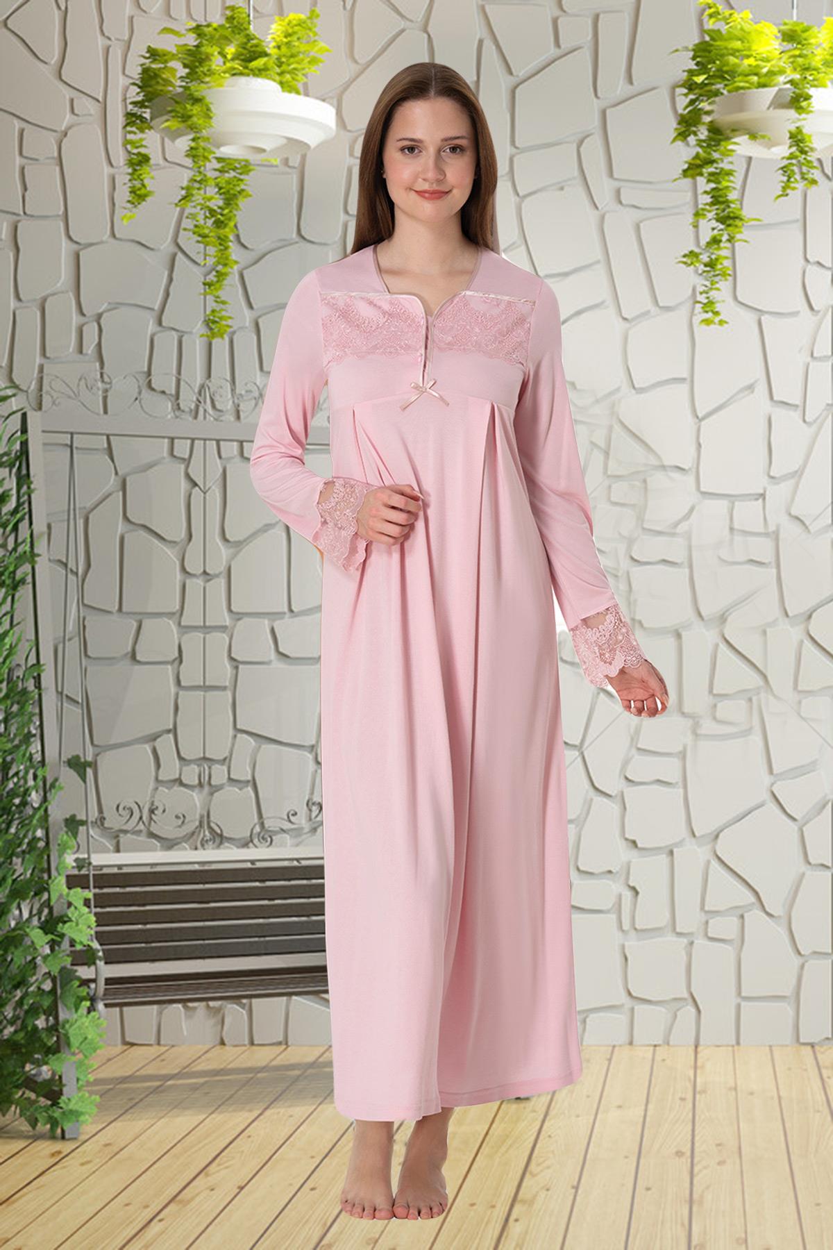 Effortt 4083 Pudra Dantelli Uzun Kol Lohusa Gecelik (4083)