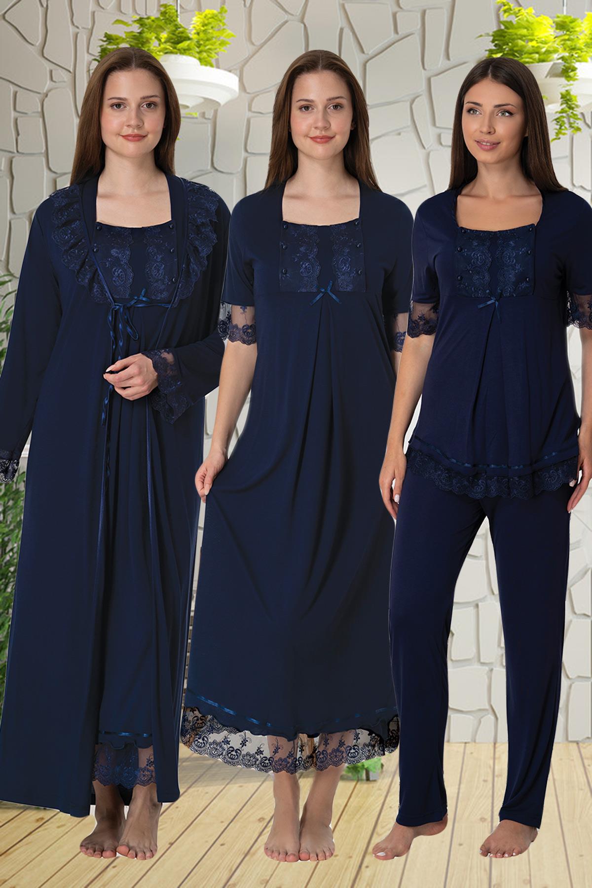 Effortt 6036 Lacivert Dantelli 4lü Lohusa Seti (6036)