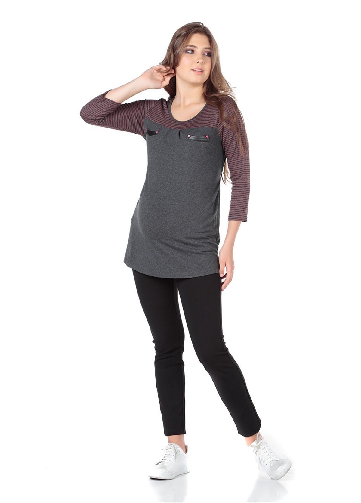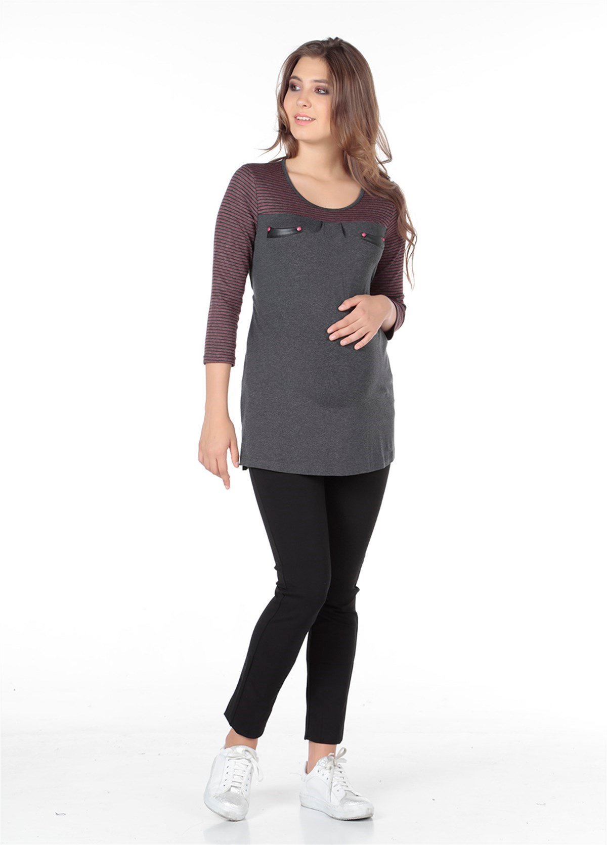 Maternity Blouse with pockets Model Purple (5594)