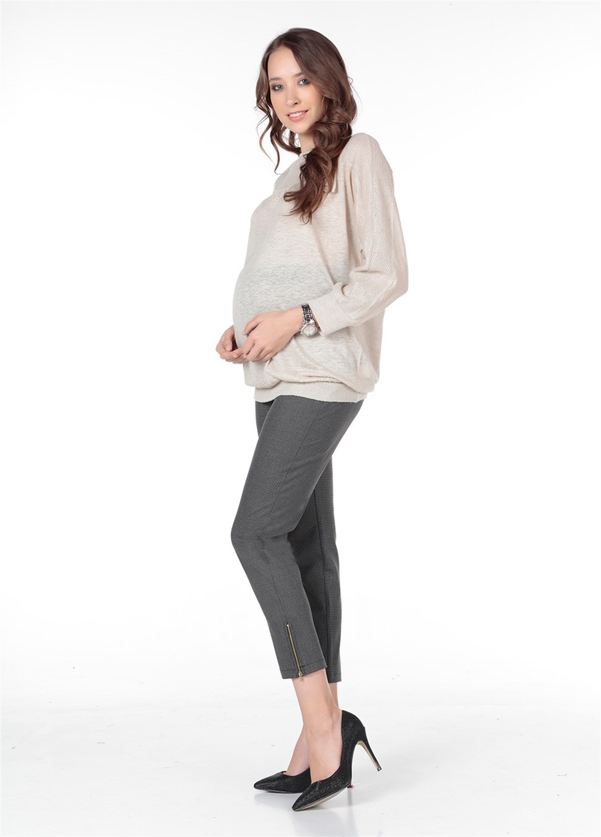 Maternity Blouse Collar Ribbonli Model Beige