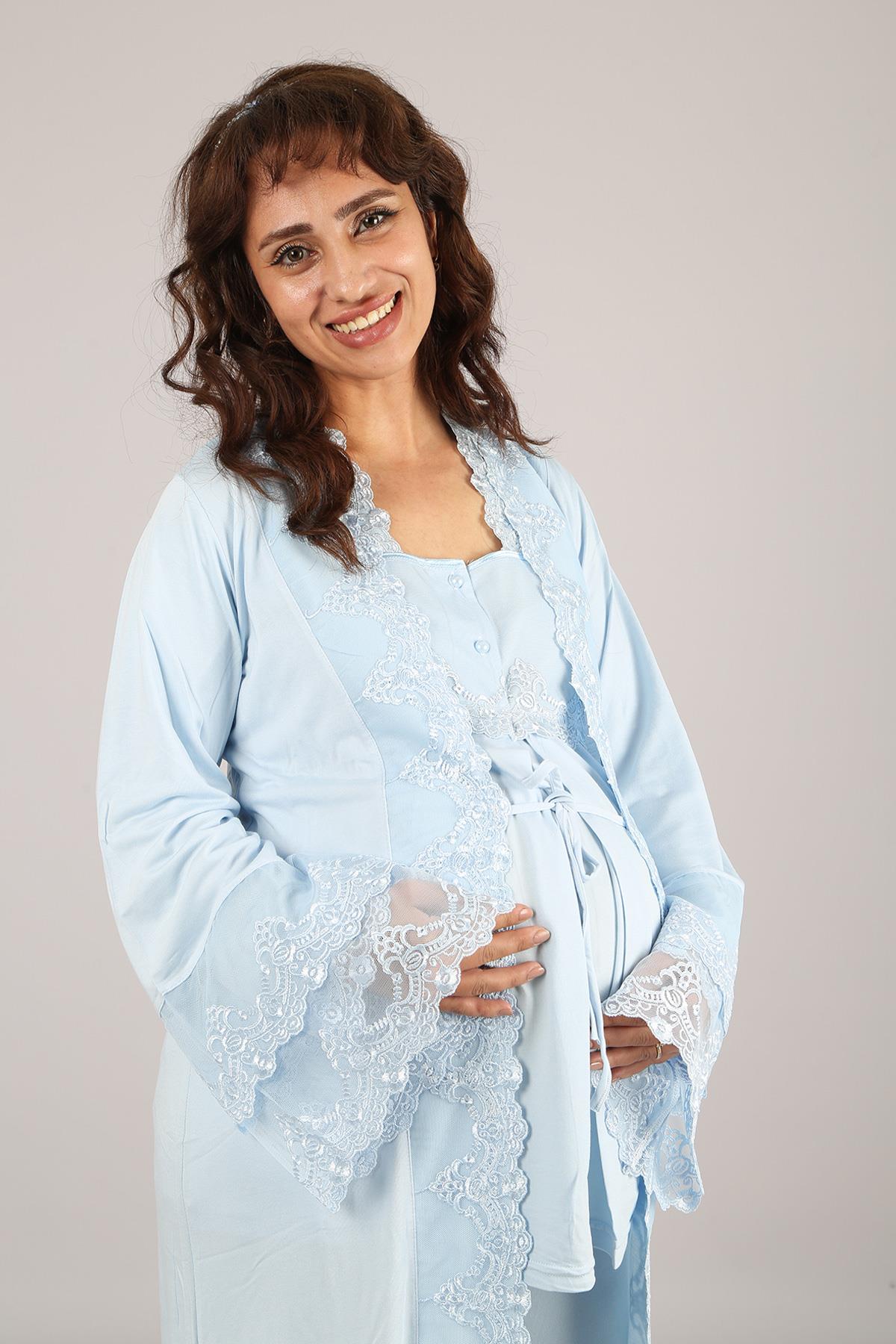Mavi Prenses Dantelli Sabahlıklı Uzun Kol Lohusa Pijama Takımı 70140 (70140)