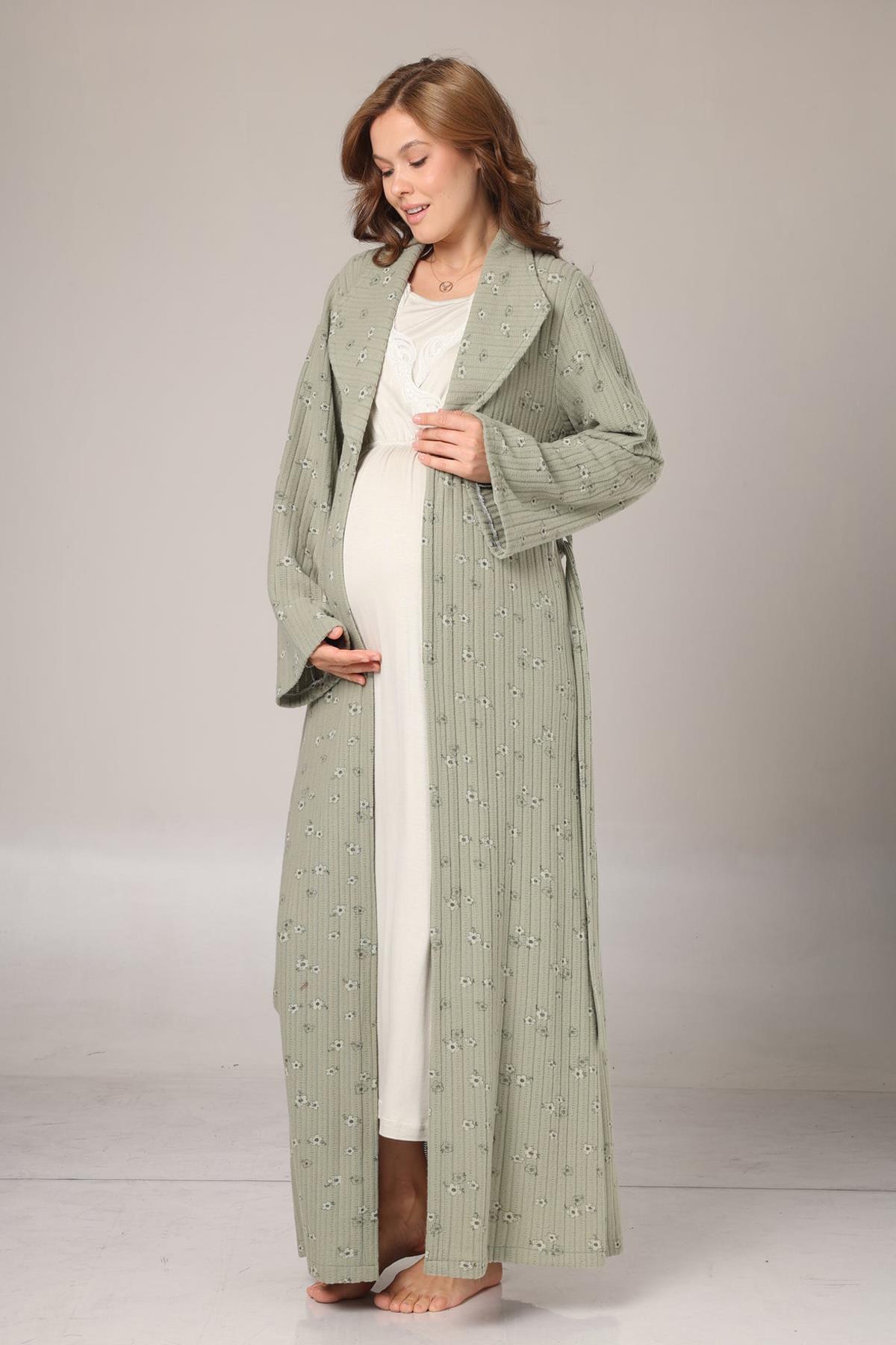 Rimel Life 1009 Kışlık Yeşil Welsoft Sabahlıklı Lohusa Gecelik Takımı