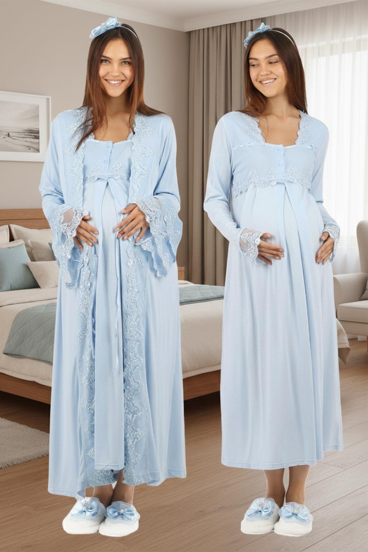 Lohusahamile 70150 mavi Prenses Sabahlıklı Lohusa Gecelik Takımı