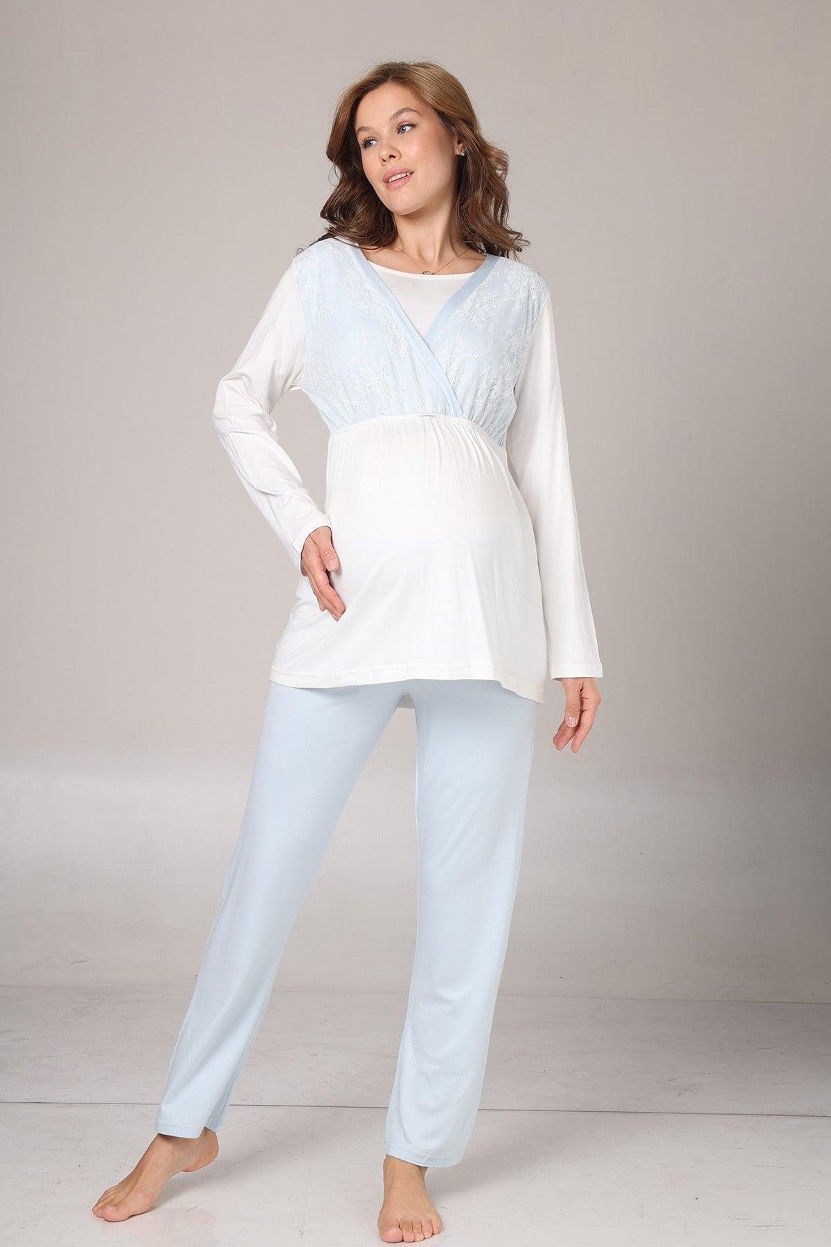 Rimel Life 1001 Mavi Dantelli Lohusa Pijama ve Jakar Sabahlık Takımı (1001)