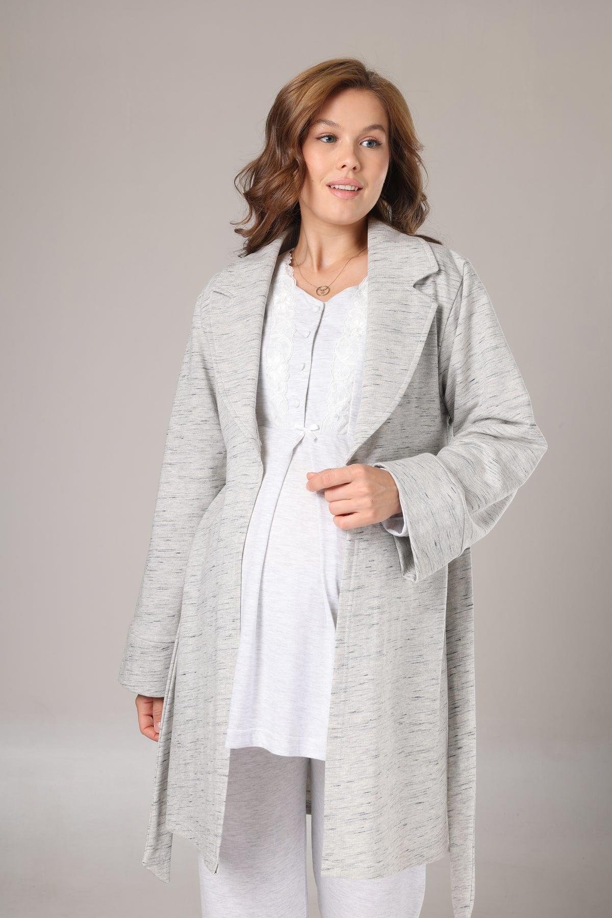 Rimel Life 1004 Gri Melanj Sabahlıklı Uzun Kol Lohusa Pijama Takımı