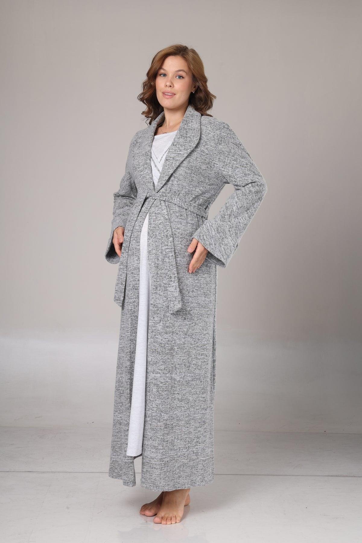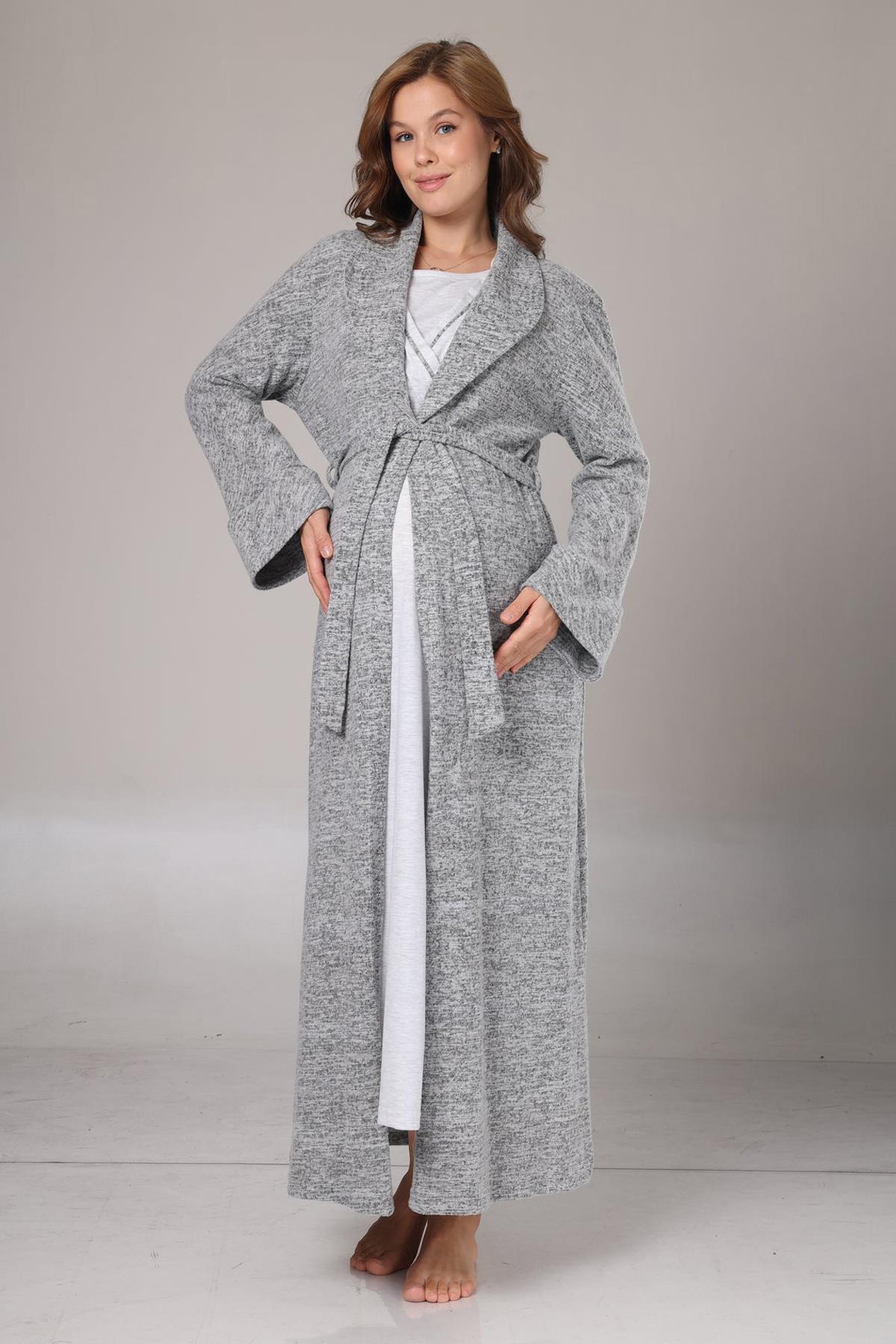 Rimel Life 1007 Kışlık Gri Polar Sabahlıklı Lohusa Gecelik Takımı (1007)
